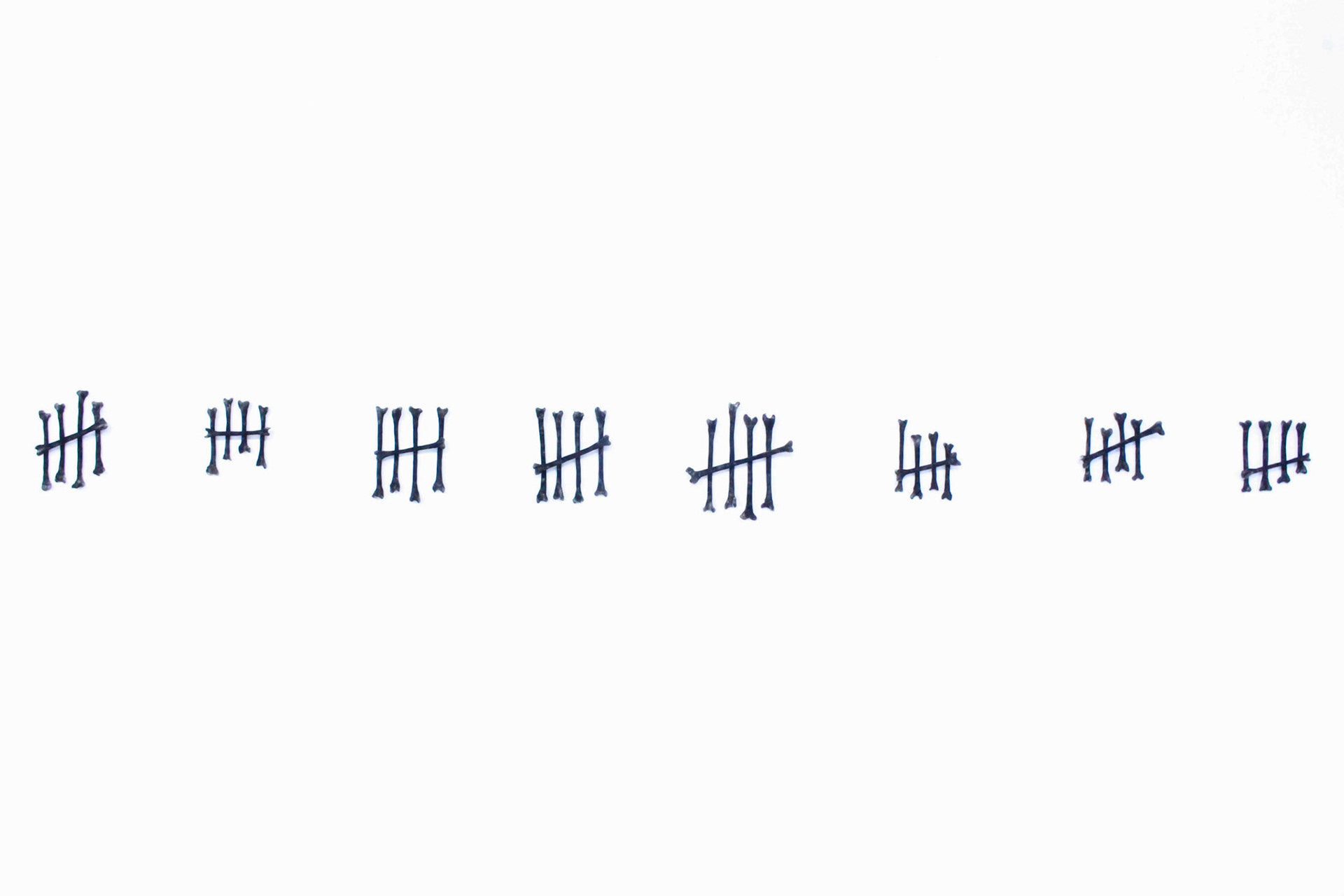 Les os en céramique de Happy End, apparaissent comme des objets graphiques, signifiants d’un décompte du temps qui passe. Ils convoquent également une vie passée qu’ils cristallisent comme signes universels qui traversent les époques et se jouent des frontières animales humaines et non-humaines.